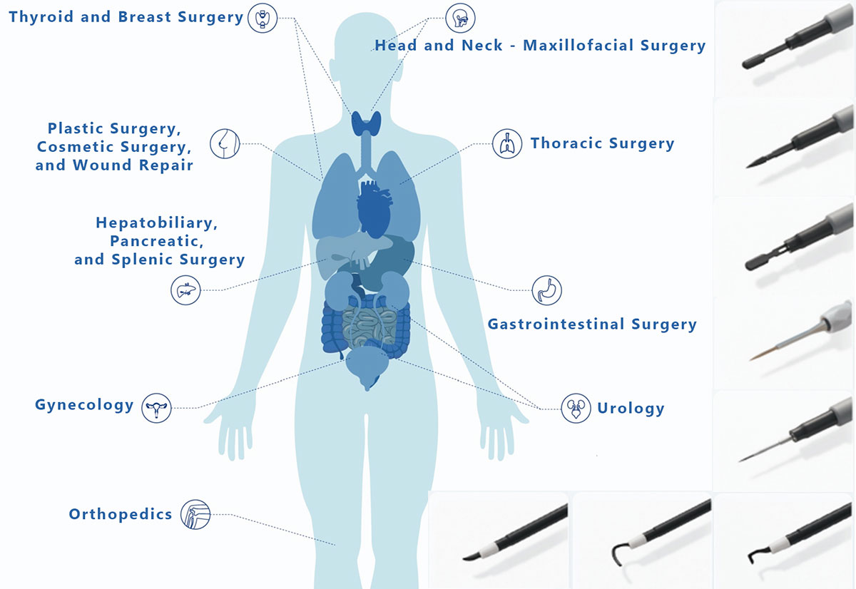 Suitable for soft tissue cutting and coagulation in all surgical procedures, especially suitable for clinical precision surgery